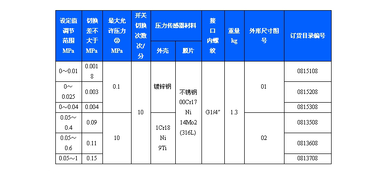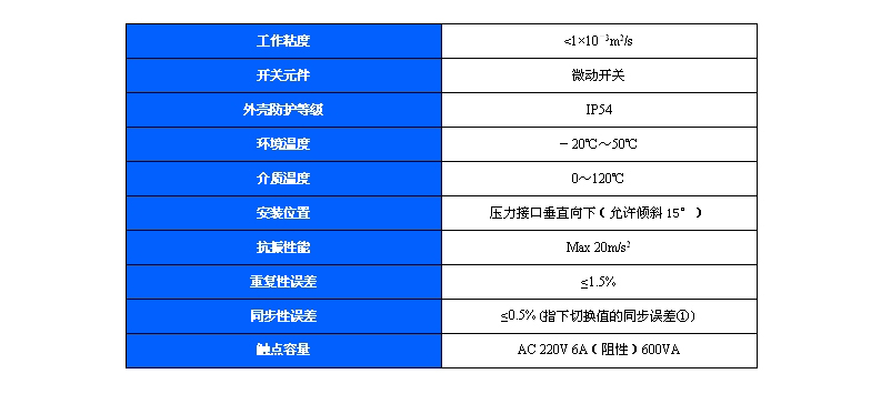 規(guī)格:501/7DZ雙觸點壓力控制器切換差不可調